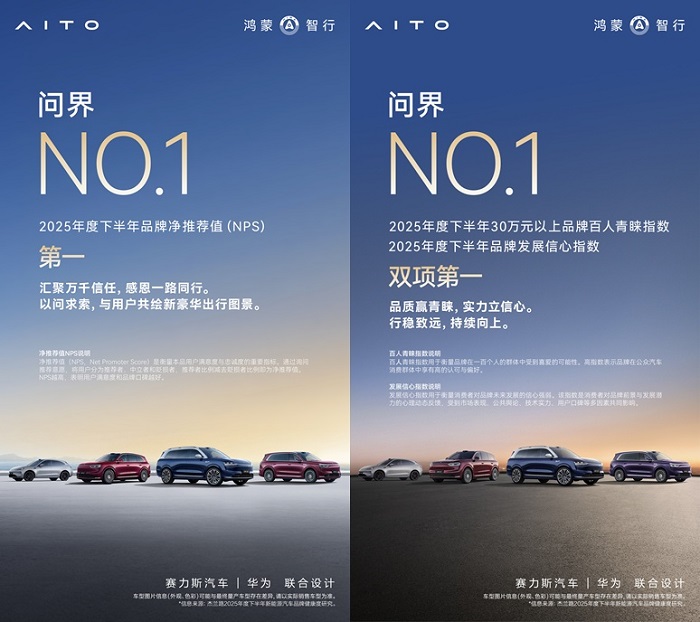 凭借硬核产品力与极致用户体验,用户口碑与品牌影响力持续攀升。问界连续三次蝉联品牌发展信心指数第一,成为高端汽车市场中第一个、也是唯一一个连续三次获得品牌发展信心指数第一的品牌;而问界M9连续四次蝉联车型总榜NPS(净推荐值)第一,成为新能源SUV车型中第一个、唯一一个达成此成就的车型;问界M8首次参评即获得车型总榜NPS(净推荐值)第二,强势展现出强劲的市场认可度与用户口碑潜力,进一步夯实了问界在高端新能源市场的领先地位。